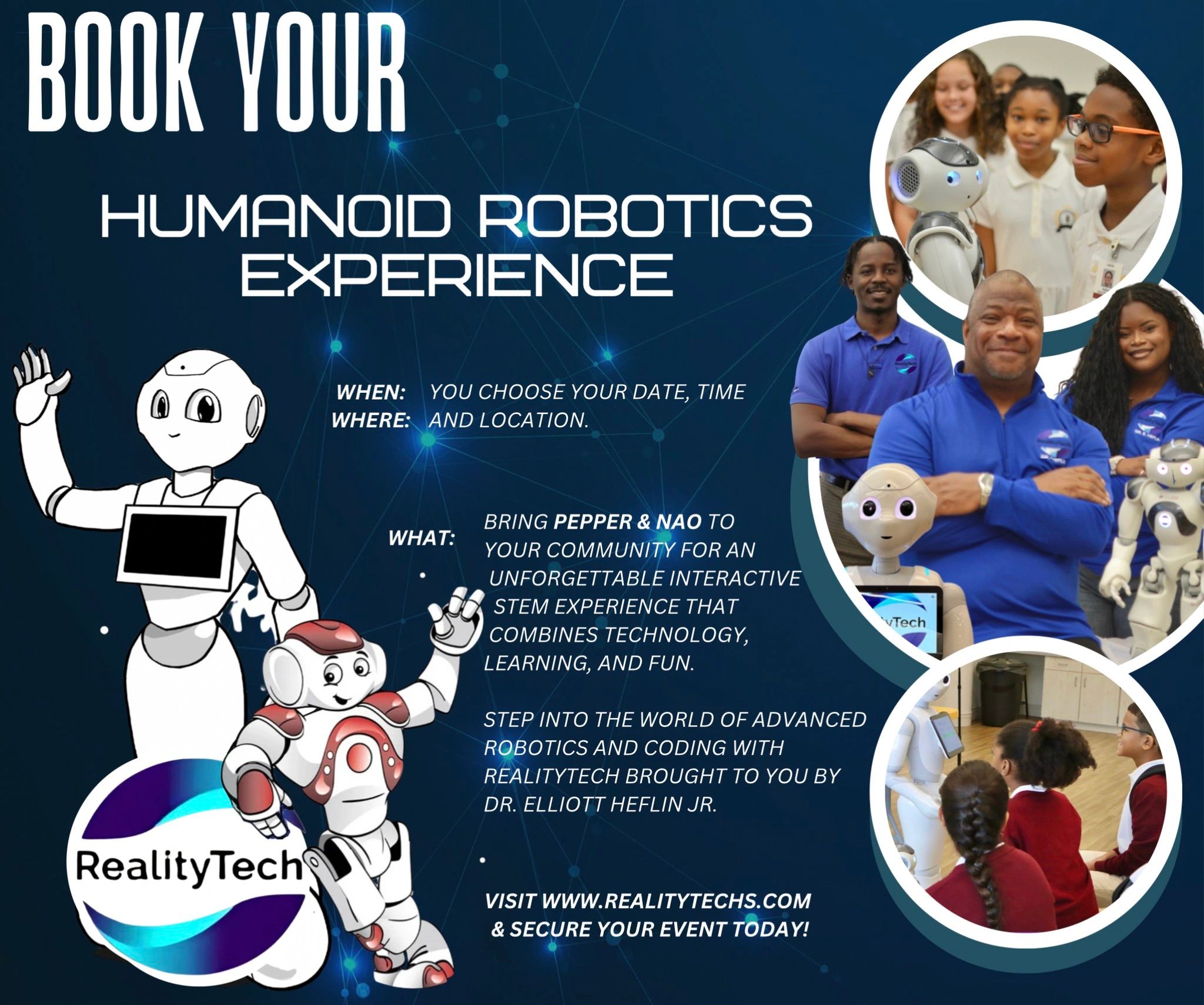 Fee for workshop: $350 for a 2-hour (min) workshop. For workshops held outside of Georgia, the cost of air travel and hotel accommodations will be added. Booking Policy: To secure your humanoid robotics workshop date, a 50% non-refundable deposit ($175) is required within 48 hours of confirmation. The remaining balance is due no later than 72 hours before the event.